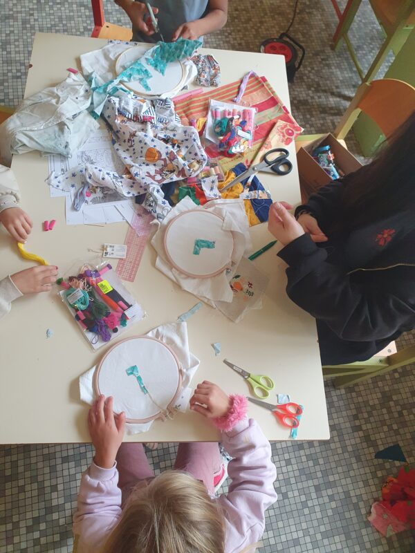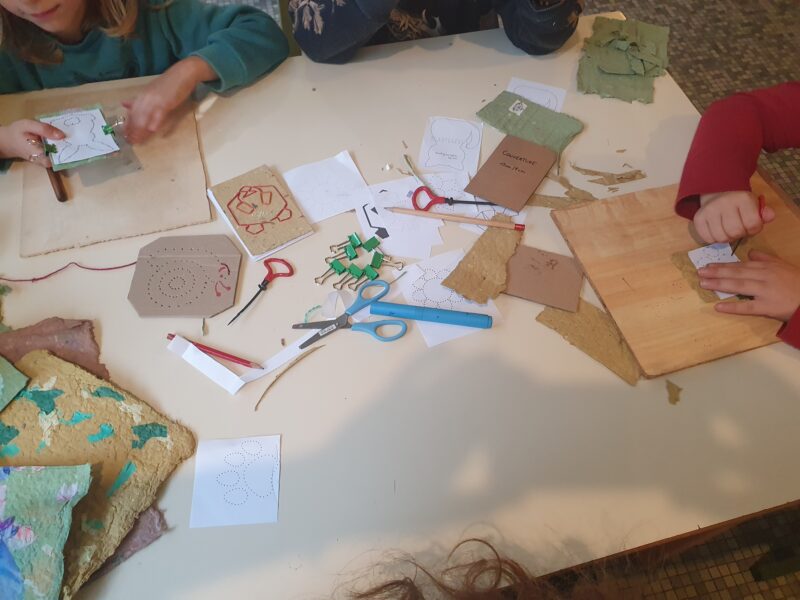 Nous voilà au terme de ce séjour ! Les enfants ont bien pris soin de finaliser leurs créations en cours. Les sacs à main et les carnets brodés en papier recyclé ont finalement été terminés avec succès.