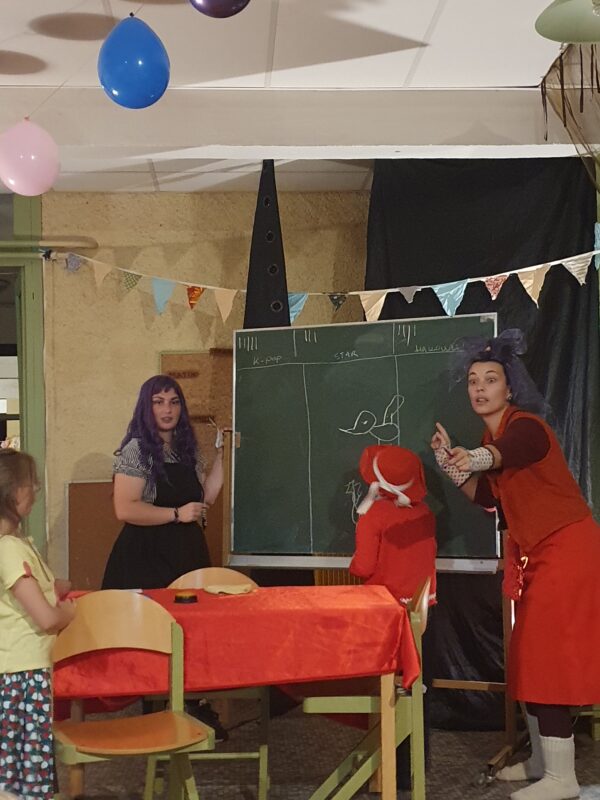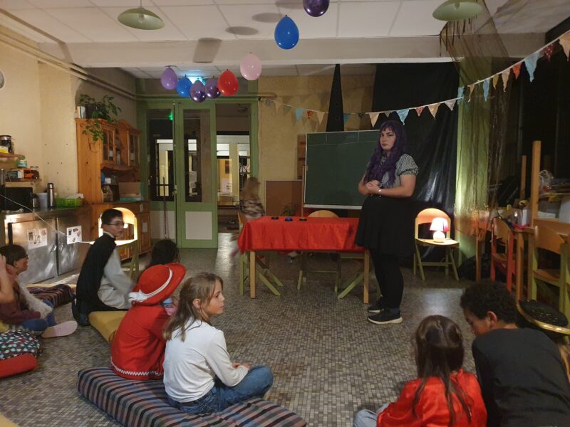 • Nous avons commencé par des jeux de mime et un « Dessiner c’est gagner », où les enfants ont pu nous montrer tous leurs talents artistiques et scéniques.
